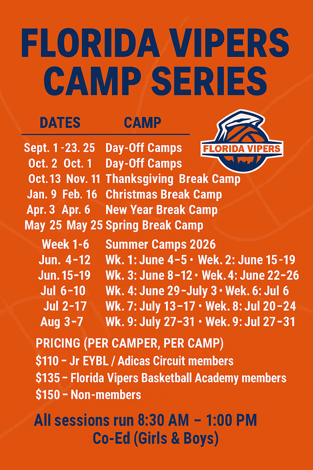 $135 Florida Vipers Basketball Academy